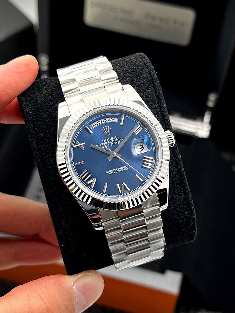 ساعت مچی رولکس دیدیت | Rolex Day-Date | نقره ای صفحه آبی هایلایت مشکی