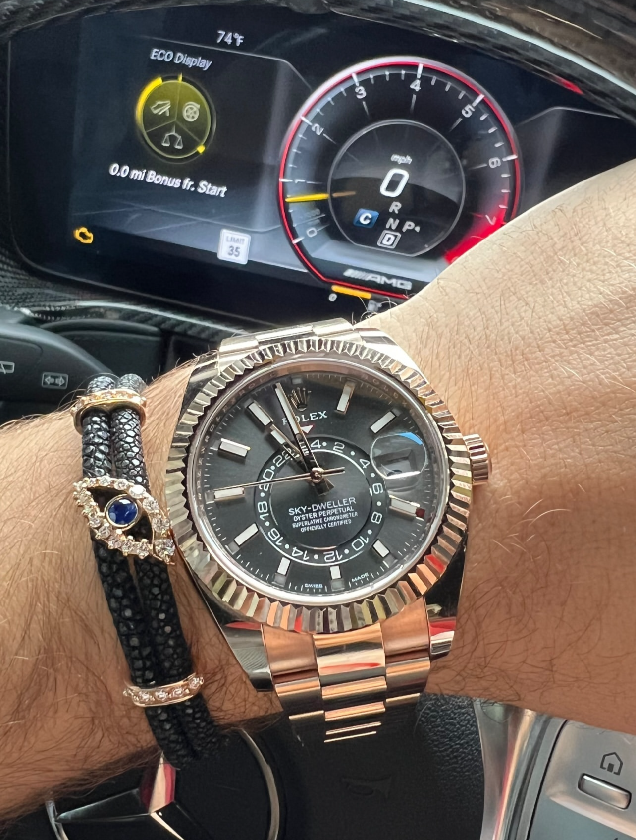 ساعت مچی رولکس اسکایدویلر | Rolex Sky-Dweller | نقرهای-رزگلد صفحه مشکی