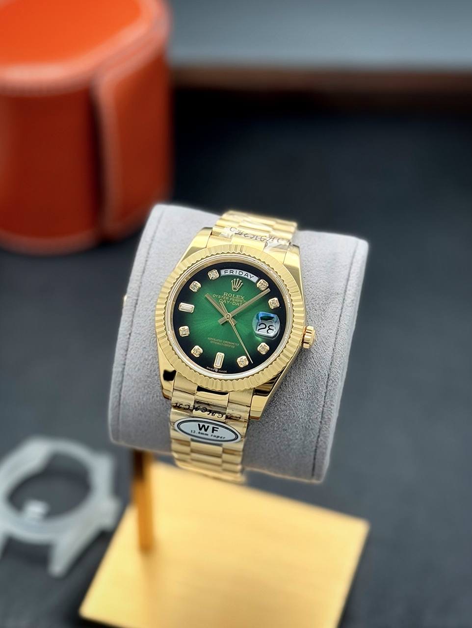 Day-Date با طراحی شناختهشده و جزئیات دقیقش، هدیهای است که گیرنده ارزش متریال و دقت ساختش را متوجه میشود. بستهبندی مناسب و حس سنگینی مطلوب ساعت هنگام باز کردن جعبه، تجربه هدیه گرفتن را کامل میکند.