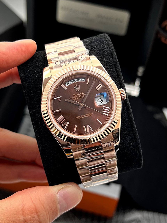 هایکپی: استیل 304، موتور اتوماتیک با ۶ تا ۱۰ ساعت پاور رزرو، شیشه مقاوم در برابر خط و خش، ضخامت ۱.۵ میلیمتر و وزن حدود ۱۰ گرم بیشتر از اصل، مقاوم در برابر آب در حد شستشوی دست. نقطه ورود مناسب برای کسی که طراحی Day-Date را میپسندد و به دنبال گزینهای مقرونبهصرفه با موتور مکانیکی است.