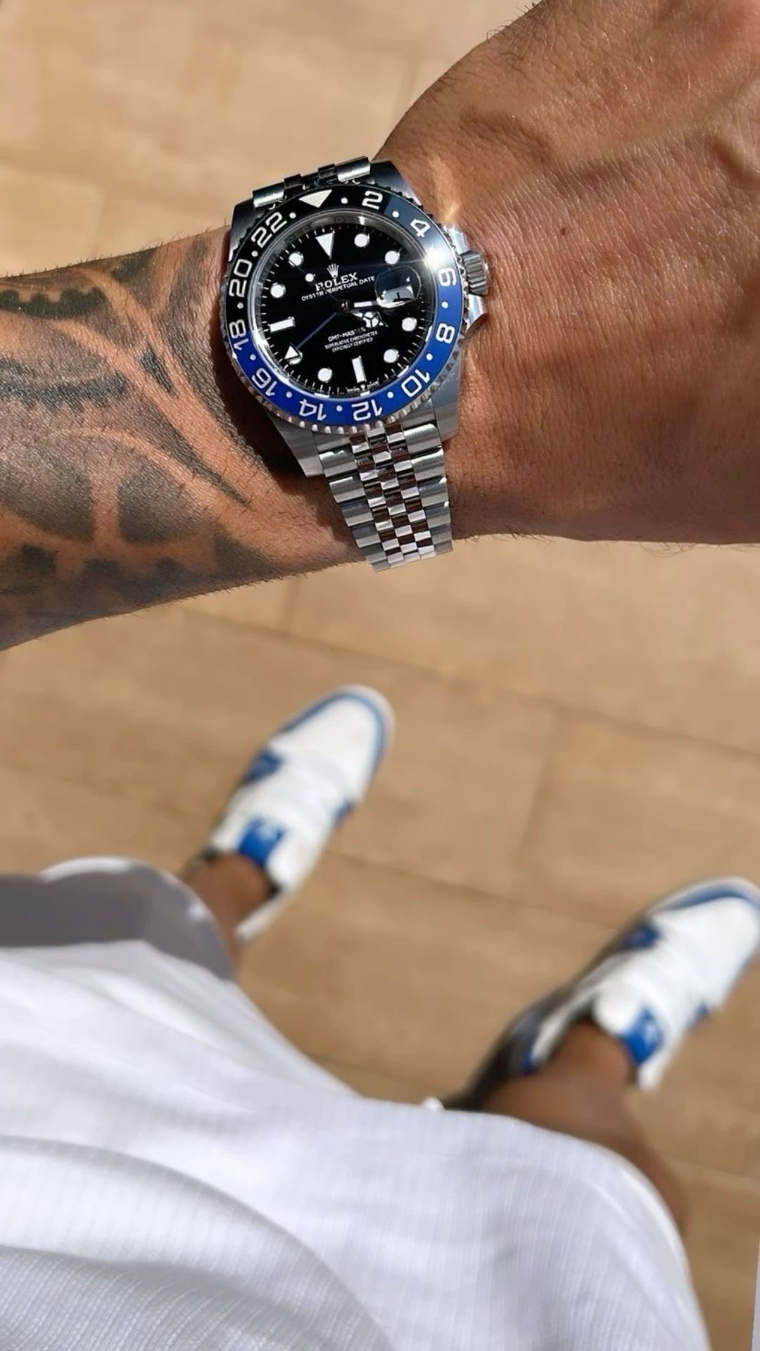 روی مچ، GMT-Master II ساعتی است که بیشتر از زمان نشان میدهد. بزل دو رنگ سرامیکی فوراً توجه را جلب میکند، اما وقتی عقربه چهارم را میبینید که مستقل از عقربه ساعت اصلی حرکت میکند، درک میکنید با یک ابزار واقعی طرف هستید. حس چرخاندن بزل و شنیدن کلیکهای منظم آن، تجربهای لمسی است که هر بار تکرارش لذتبخش است.