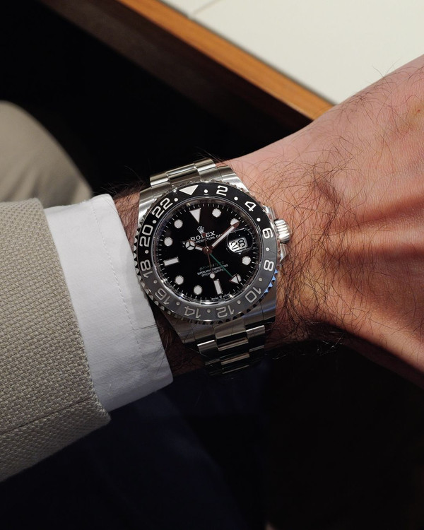 روی مچ، GMT-Master II ساعتی است که بیشتر از زمان نشان میدهد. بزل دو رنگ سرامیکی فوراً توجه را جلب میکند، اما وقتی عقربه چهارم را میبینید که مستقل از عقربه ساعت اصلی حرکت میکند، درک میکنید با یک ابزار واقعی طرف هستید. حس چرخاندن بزل و شنیدن کلیکهای منظم آن، تجربهای لمسی است که هر بار تکرارش لذتبخش است.