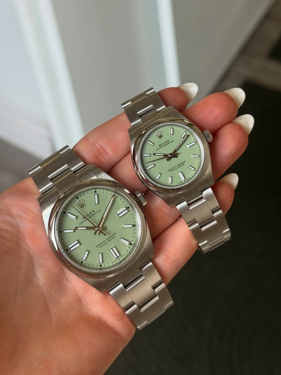 ساعت مچی رولکس اویستر پرپچوال | Rolex Oyster Perpetual | نقره ای صفحه پسته ای
